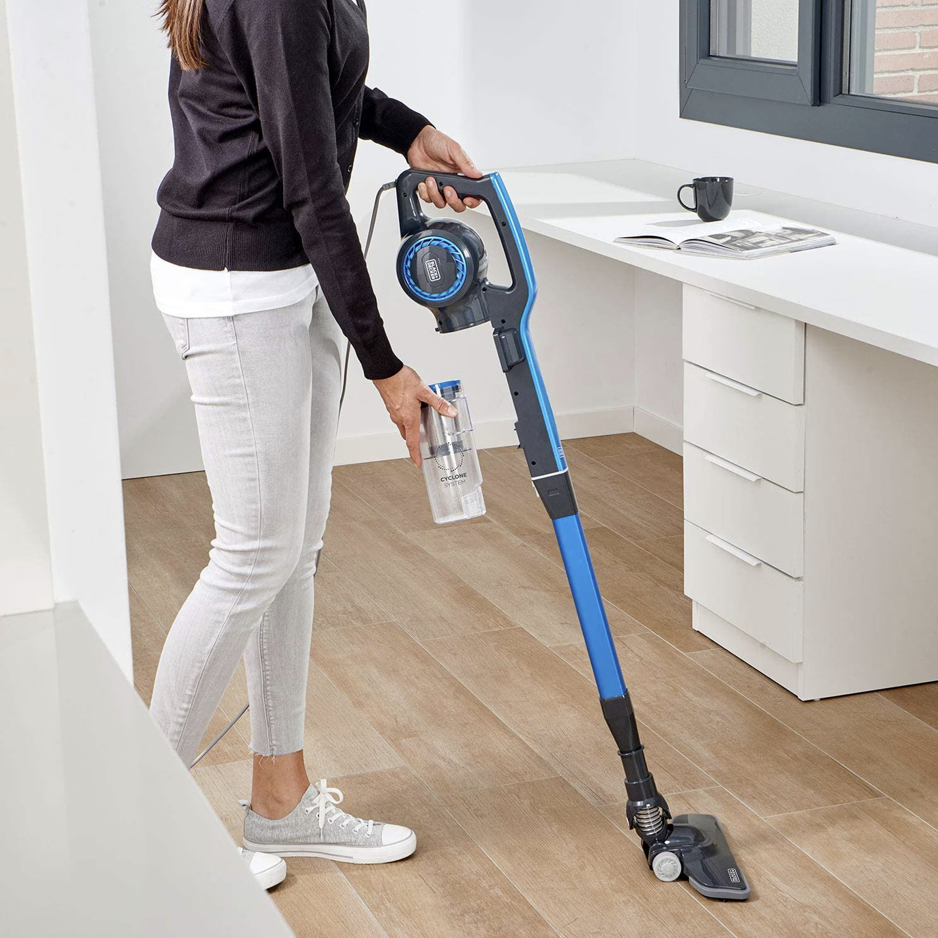 Dieser kabellose? Nein – bewusst kabelgebundeneStabstaubsauger liefert mit 600 W konstante Leistung ohne Ladepausen. Das zyklonische, beutellose System (Behälter 0,8 l) hält die Saugkraft stabil, während du dank 2-in-1 Design in Sekunden vom Bodenmodus zum Handstaubsauger mit Fugendüse wechselst. Mit 6 m Kabellänge erreichst du bequem mehrere Räume – ideal für Hartböden, Teppiche und Zwischenräume.