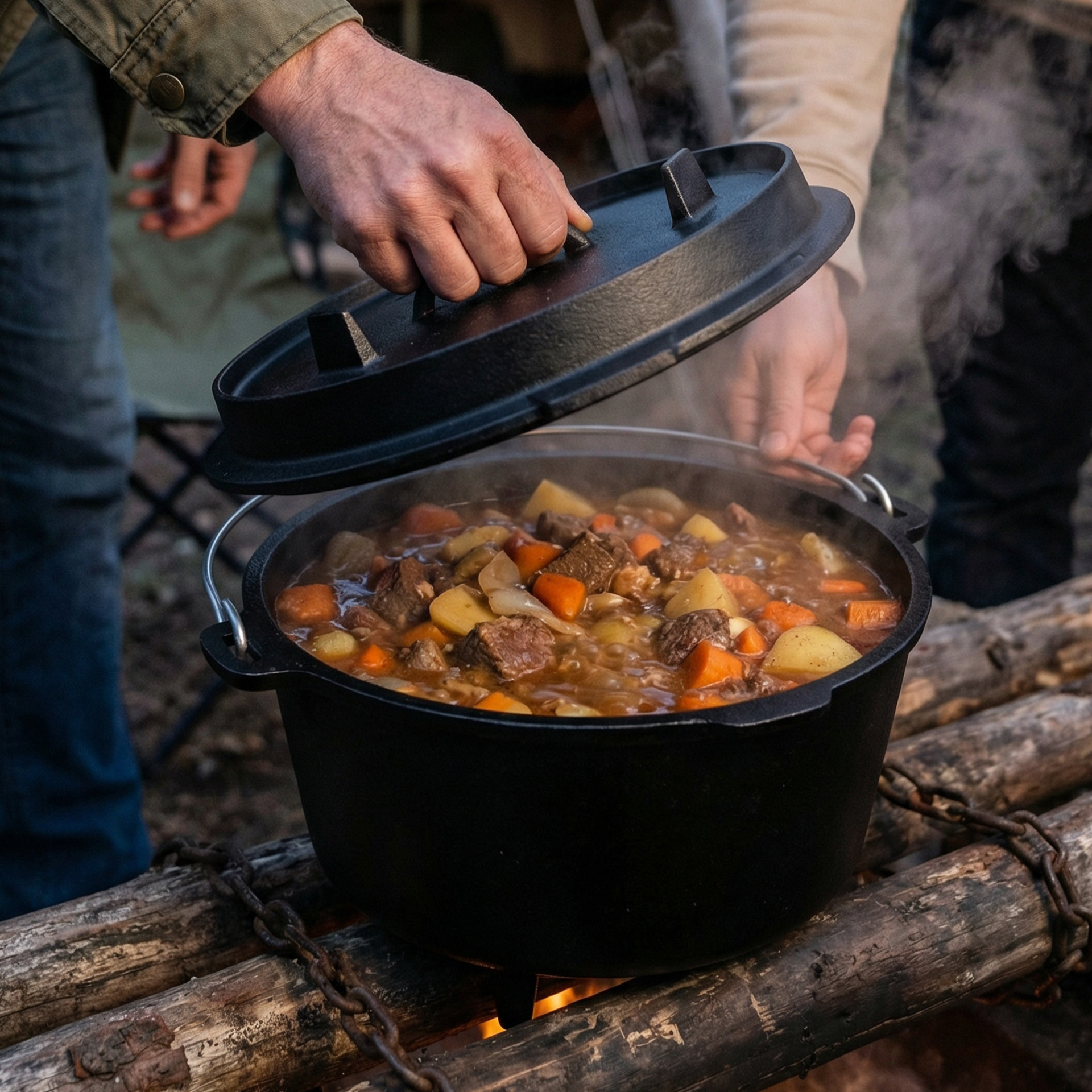 Topf und Deckel vorheizen für intensive Röstaromen. Nach dem Kochen warm ausbürsten, nur wenig Wasser verwenden, vollständig trocknen und dünn mit Öl einreiben (Seasoning). Keine Spülmaschine oder aggressive Reiniger – so bleibt die Patina erhalten.