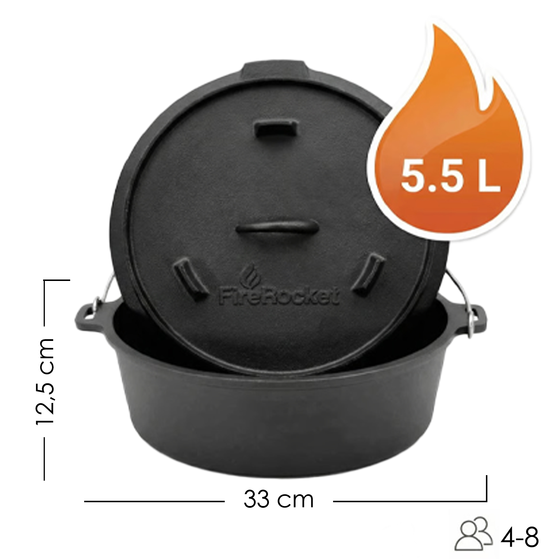 FireRocket Dutch Oven 6qt 5,5 l ohne Füße