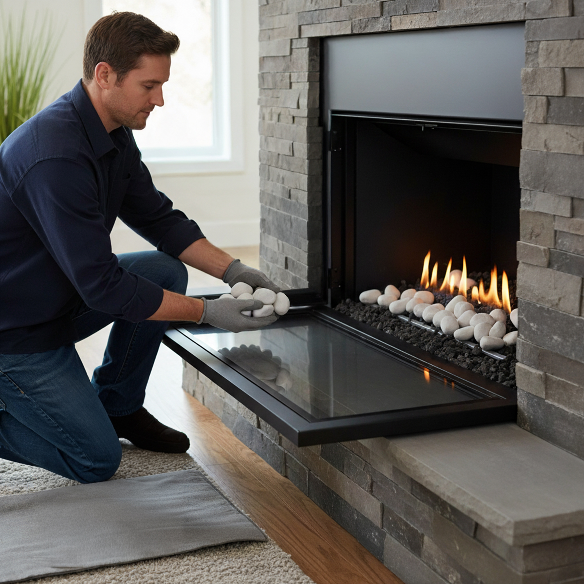 Schnell neues Ambiente: In wenigen Handgriffen wirkt dein Kamin wertiger und strukturiert. Die weißen Steine reflektieren das Flammenlicht und erzeugen ein klar konturiertes, ruhiges Flammenbild – perfekt für gemütliche Abende, Gästeempfang oder stilvolle Deko-Arrangements im Alltag.