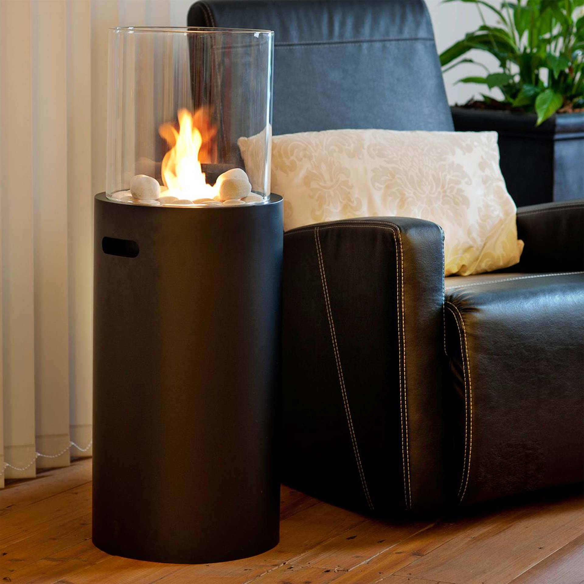 Dieser stabile Standkamin besticht durch das harmonische Design. Die Säule ist komplett aus 1,2 mm starken Stahl und gewährleistet dadurch einen sicheren Stand.  Die Feuerstelle wird durch 5 mm Sicherheitsglas umgeben und strahlt eine angenehme Wärme aus.