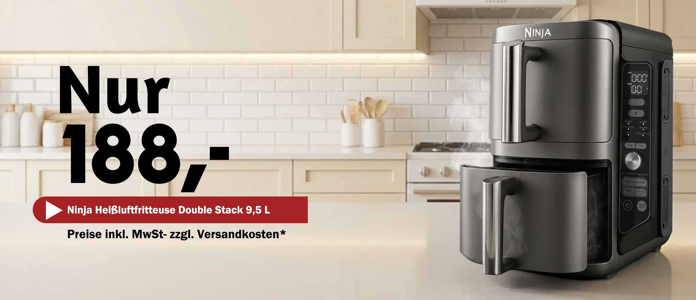 Im Haushaltsgeräte Sale erwarten dich starke Marken zu reduzierten Preisen. Entdecke Heißluftfritteusen, Küchenmaschinen und Staubsauger von Top-Marken wie Ninja und Severin. Ideal für alle, die beim Kochen, Backen oder Reinigen auf Qualität setzen – und dabei clever sparen möchten.