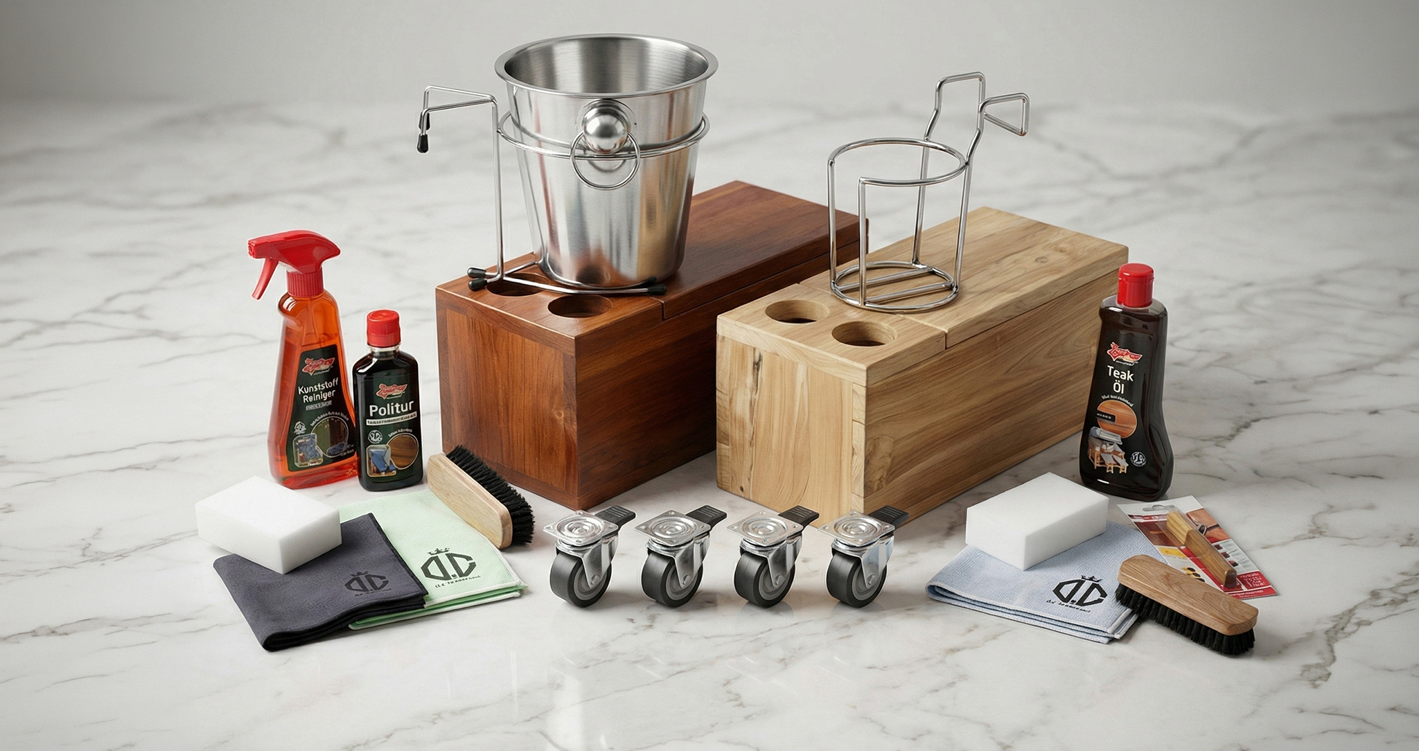 Auch das passende Strandkorbzubehör macht einen großen Unterschied. Transportrollen erleichtern das Bewegen, Getränkehalter sorgen für zusätzlichen Komfort und Pflegesets helfen dir dabei, Materialien langfristig schön zu erhalten.