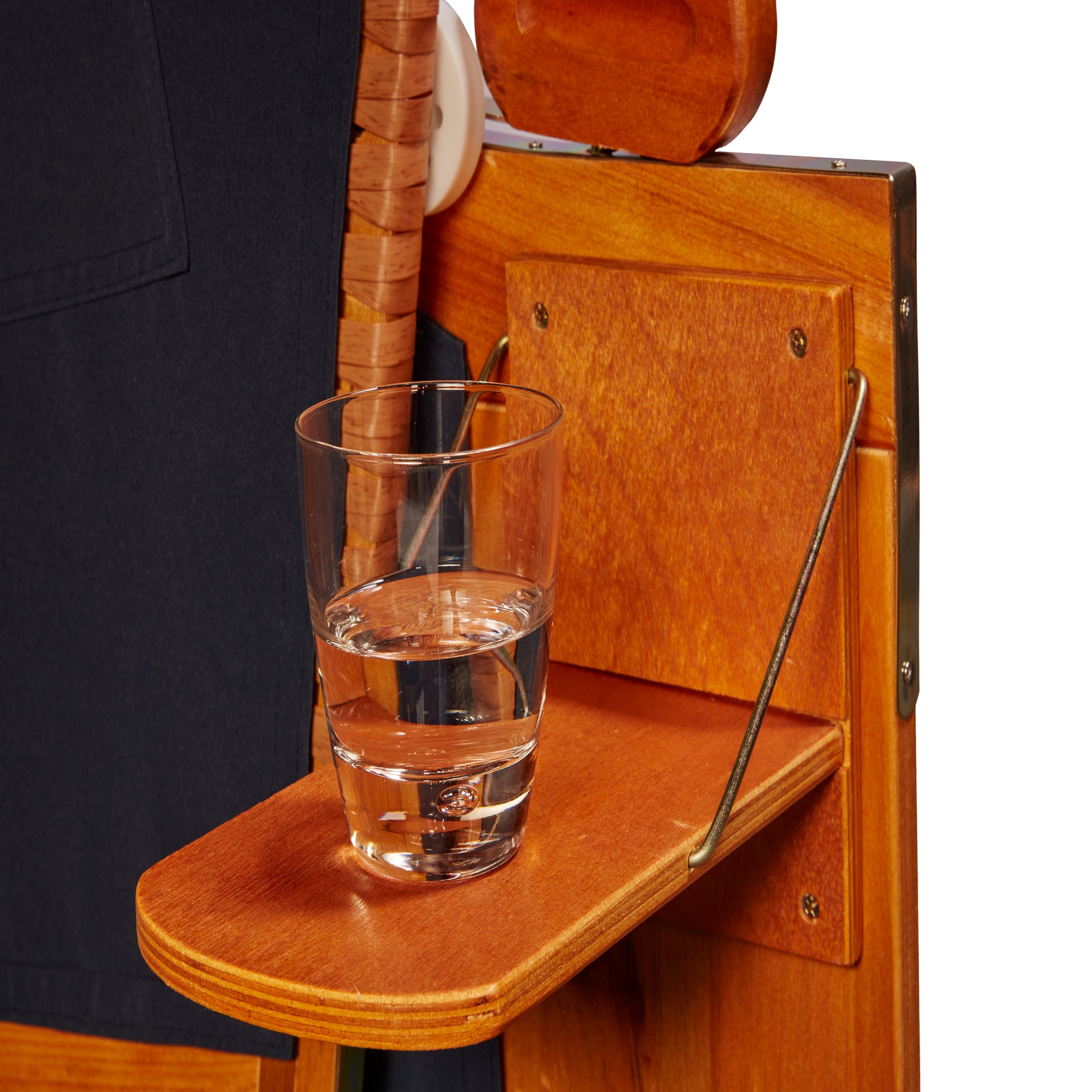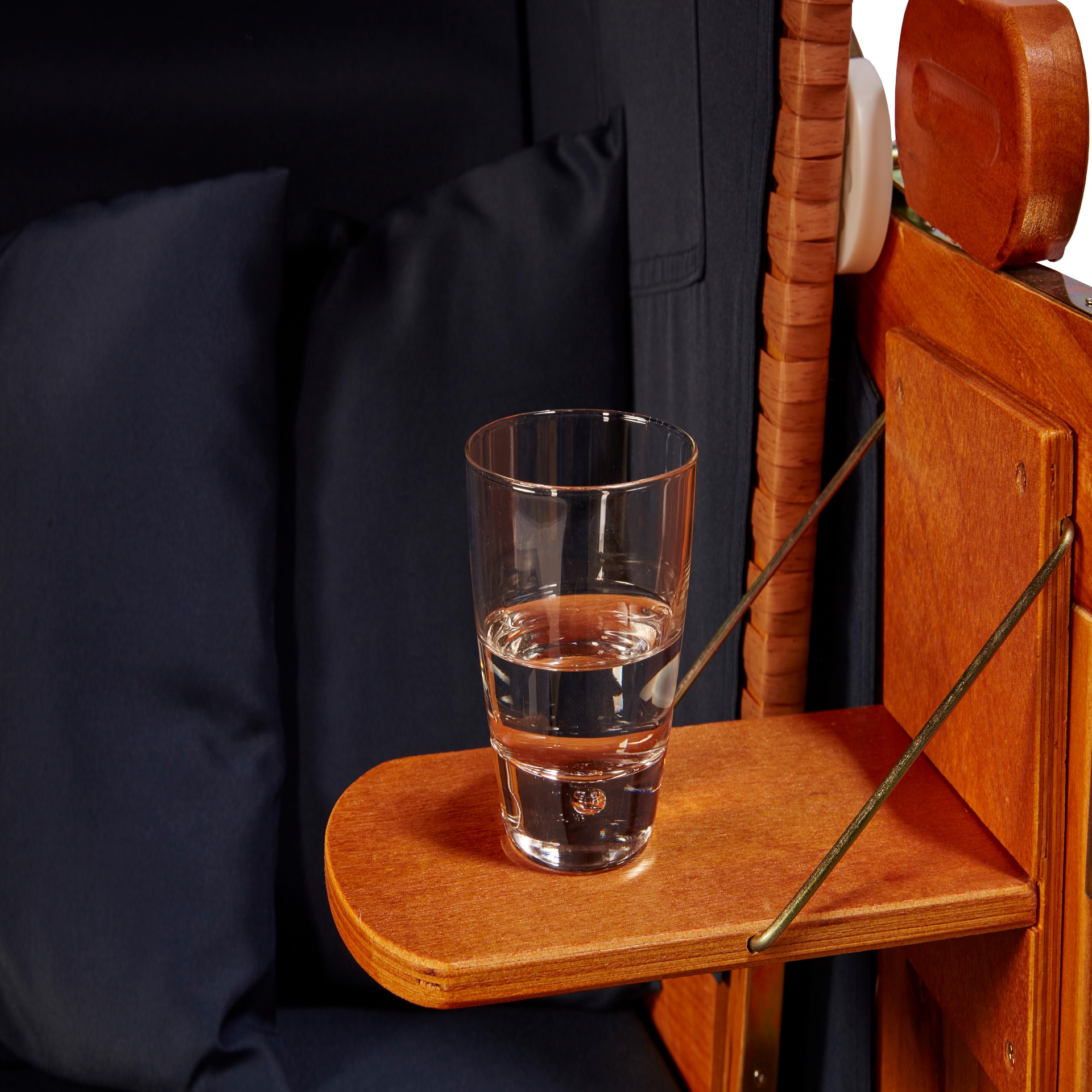 Der 2-Sitzer "Brigitte" Ostsee blau weiß nadelstreif ist ein hervorragender Strandkorb für Garten, Terrasse und Balkon. Er bietet eine stabile und bequeme Sitzfläche für bis zu zwei Personen. Dank der Wurf- und Nackenkissen und einem Neigungswinkel von 85° ist eine angenehme Sitz- und Liegeposition gewährleistet. In den praktischen Zeitungstaschen auf beiden Seiten können Sie Ihre Lektüren verstauen. Die beiden klappbaren Tische bieten eine stabile Ablagefläche für Snacks und Getränke.