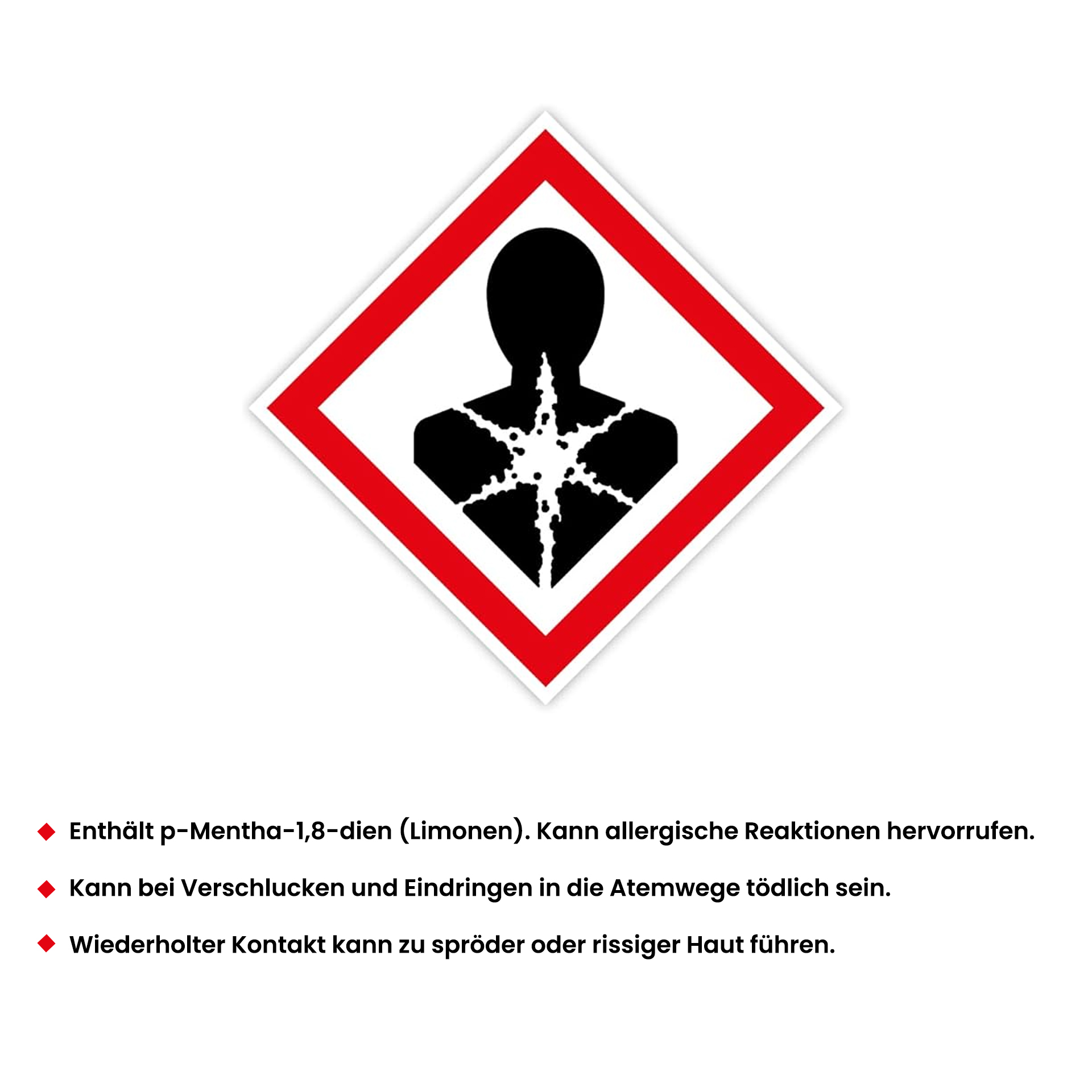 Enthält p-Mentha-1,8-dien (Limonen). Kann allergische Reaktionen hervorrufen.
