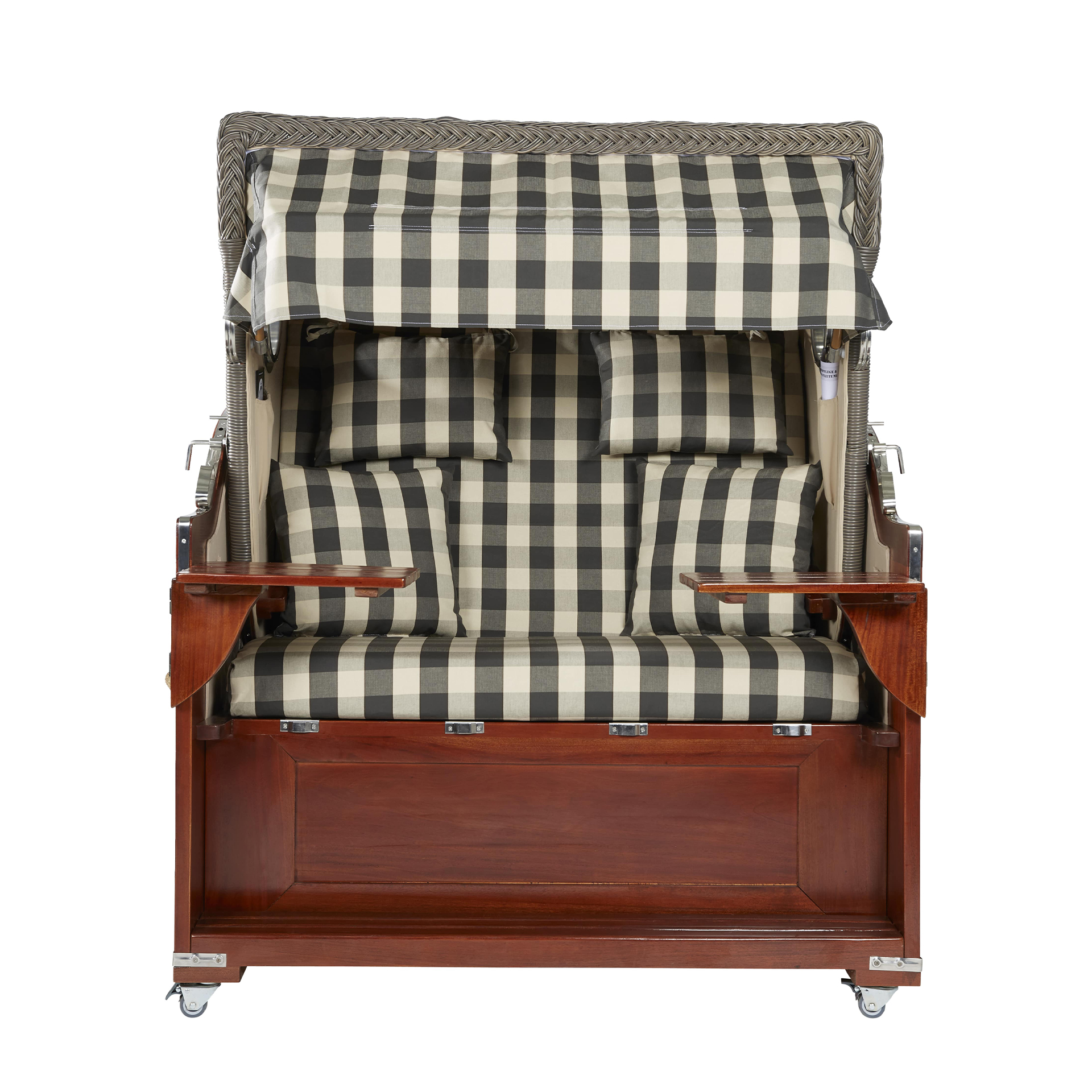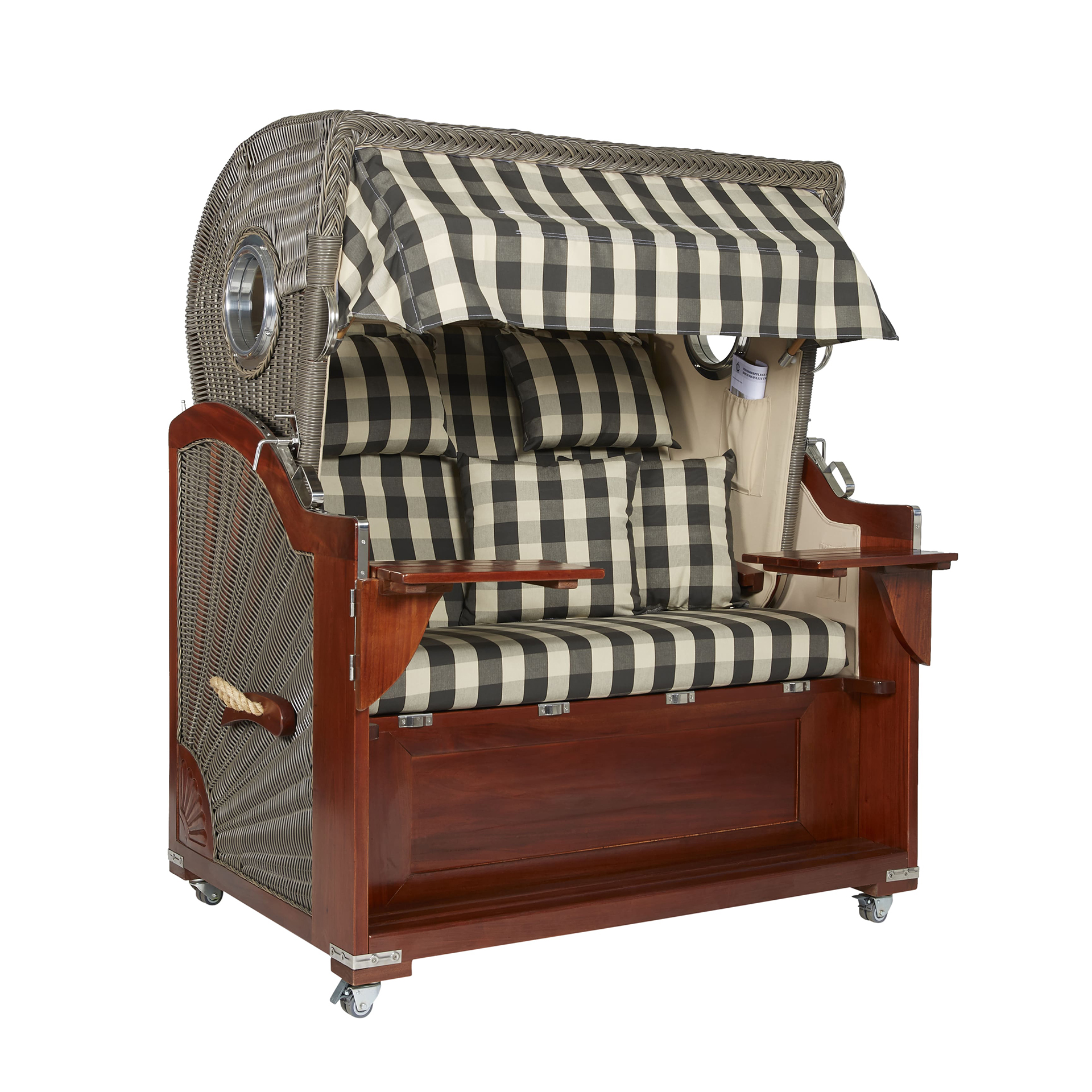 Unser 2,5-Sitzer Romy in grau kariert ist das ultimative Accessoire für alle Strandliebhaber, die das Beste aus ihrem Garten herausholen möchten. Mit seinem luxuriösen Design und seiner hervorragenden Qualität ist unser Strandkorb der perfekte Begleiter für einen entspannten Tag im freien.