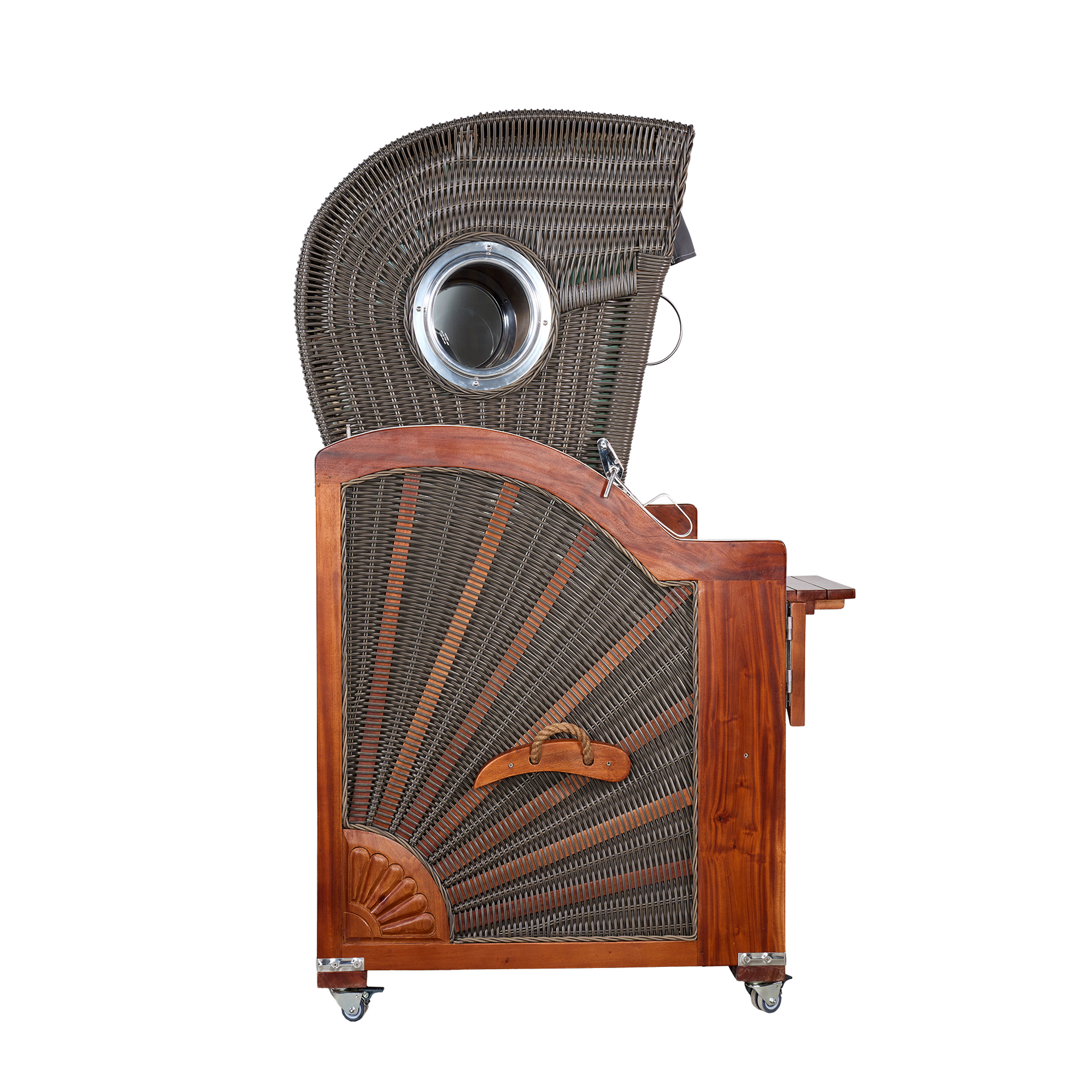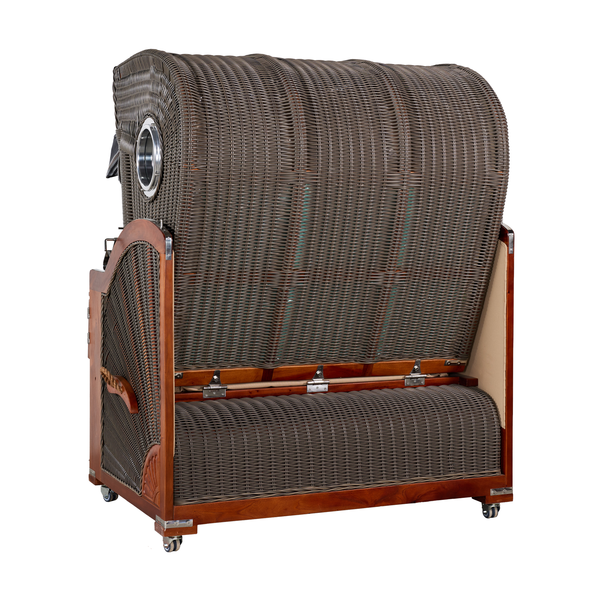 Das handgefertigte, wetterfeste Polyrattan-Geflecht ist pflegeleicht und langlebig. Beachten Sie bitte unsere Pflegehinweise für Strandkörbe, damit Sie lange etwas von Ihrem Korb haben.