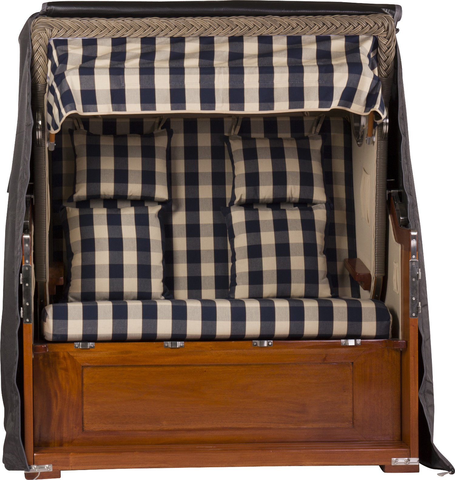 Die Hülle ist ausschließlich als Schutzmaßnahme und nicht für die Überwinterung im Freien gedacht, sollte nicht mit scharfen Gegenständen gereinigt werden, und es wird empfohlen, den Strandkorb aufgrund möglicher Feuchtigkeitsstauung regelmäßig zu lüften.