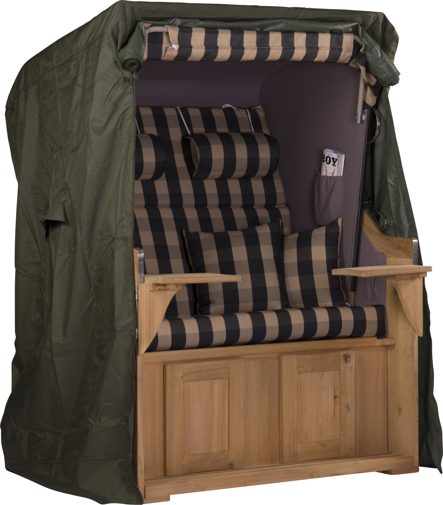 Die grüne Strandkorbabdeckung schützt Ihren Strandkorb das ganze Jahr über. Sie ist besonders zuverlässig und robust, weil sie aus sehr strapazierfähigem und wetterbeständigem Material besteht.