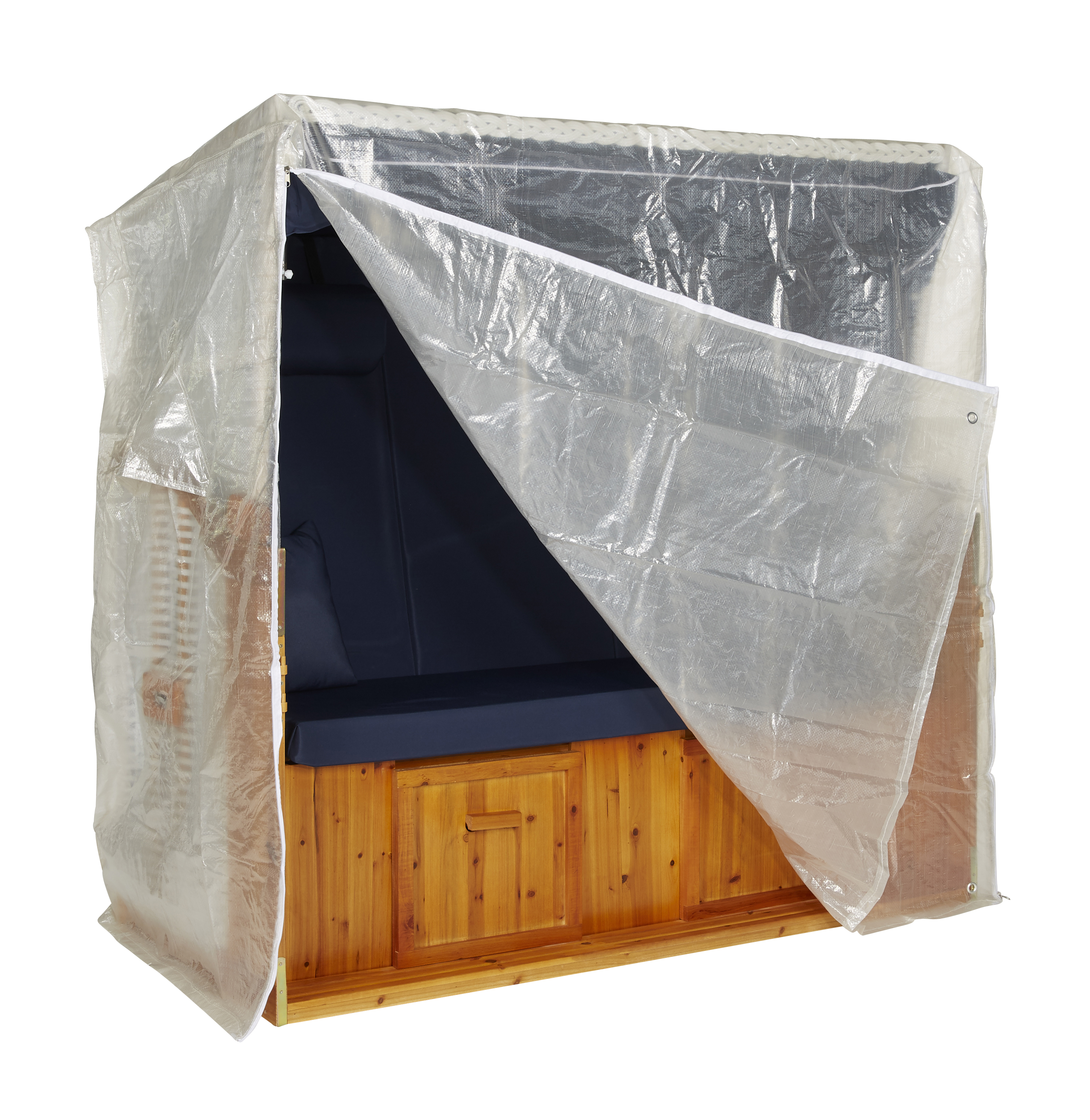 Die Schutzhülle besteht aus strapazierfähigem und wasserabweisendem Material, das für eine langanhaltende Nutzung konzipiert wurde. Das transparente Design ermöglicht es Ihnen, den Blick auf Ihren stilvollen Strandkorb zu bewahren, während er dennoch vor Witterungseinflüssen geschützt ist.