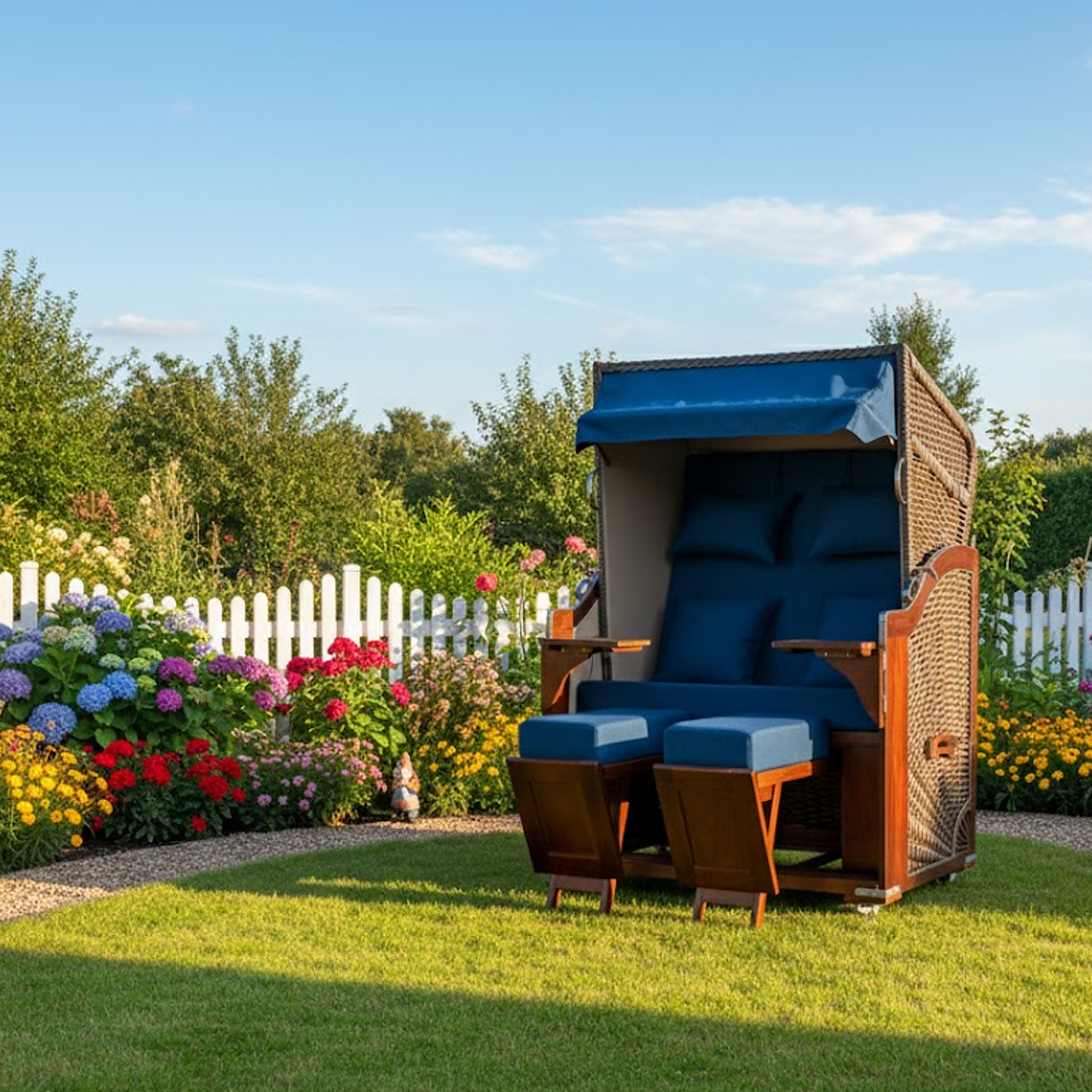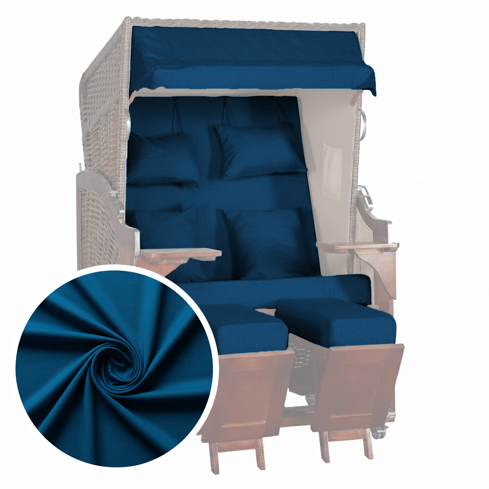 Strandkorbbezug in Stahlblau