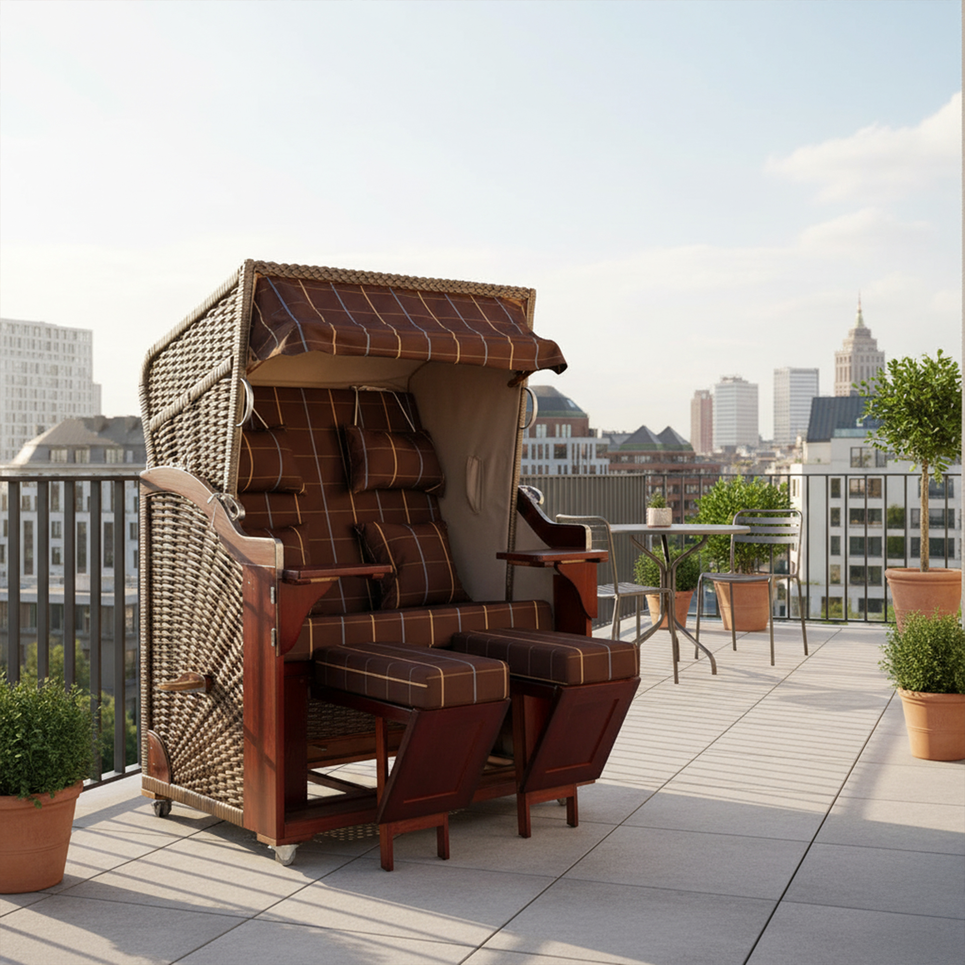 - Pflegeleichte Outdoor-Materialien: ideal für Terrasse, Balkon und Garten