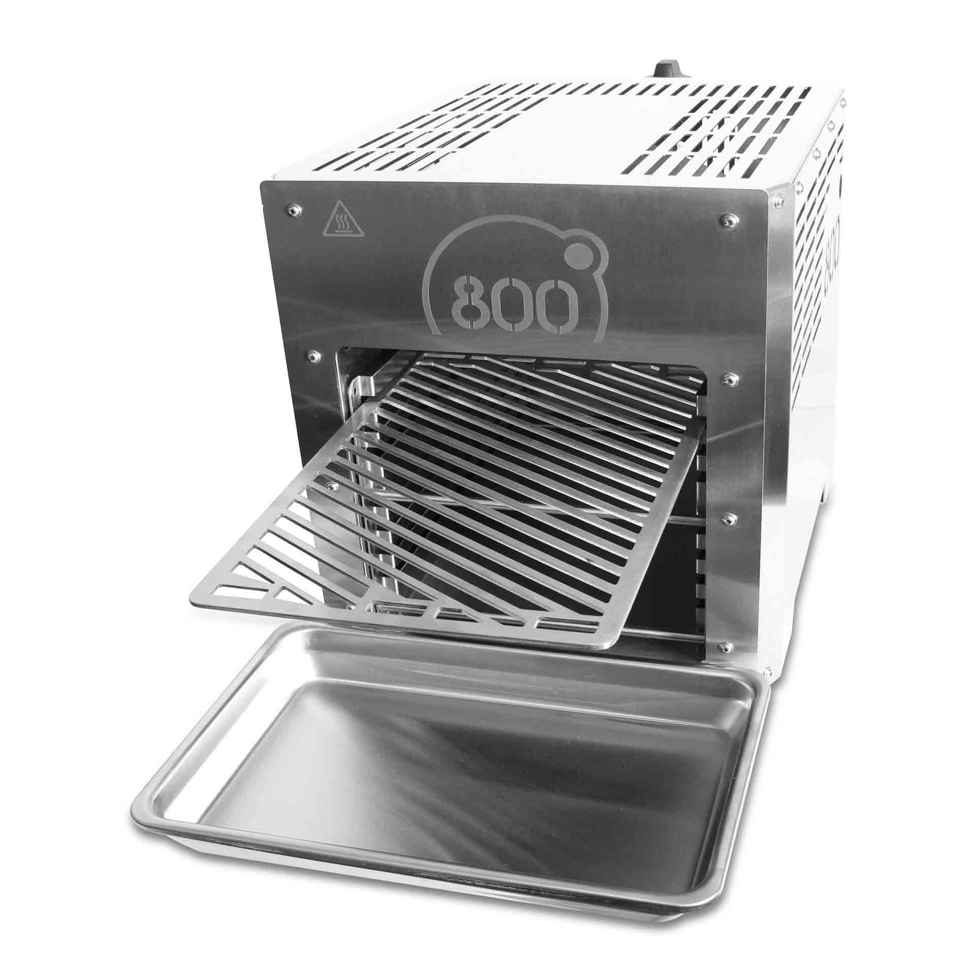 - Bis zu 800 °C Oberhitze: schnelle Maillard-Kruste, innen zart & saftig
