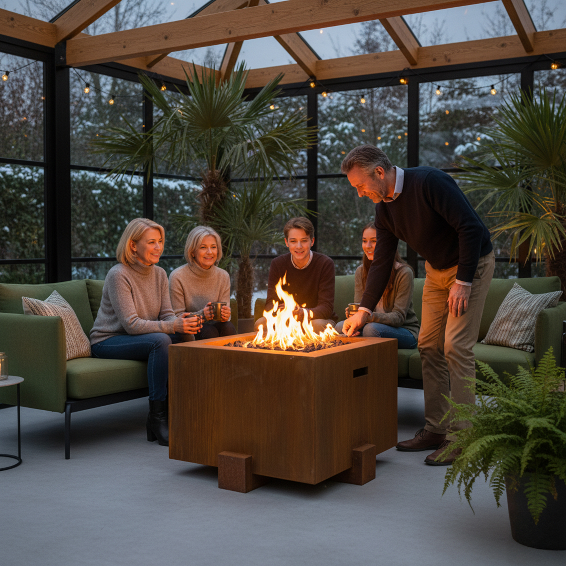 Genieße Lagerfeueratmosphäre auf Knopfdruck: keine Holzvorräte, kein Aschestaub – nur stimmungsvolle Flammen und ein Gefühl von Nähe & Geborgenheit. Der lebendige Cortenstahl sorgt für eine erdige, natürliche Note, die moderne wie rustikale Outdoor-Bereiche veredelt. Ideal als Mittelpunkt deiner Lounge, für gesellige Runden oder romantische Stunden zu zweit.