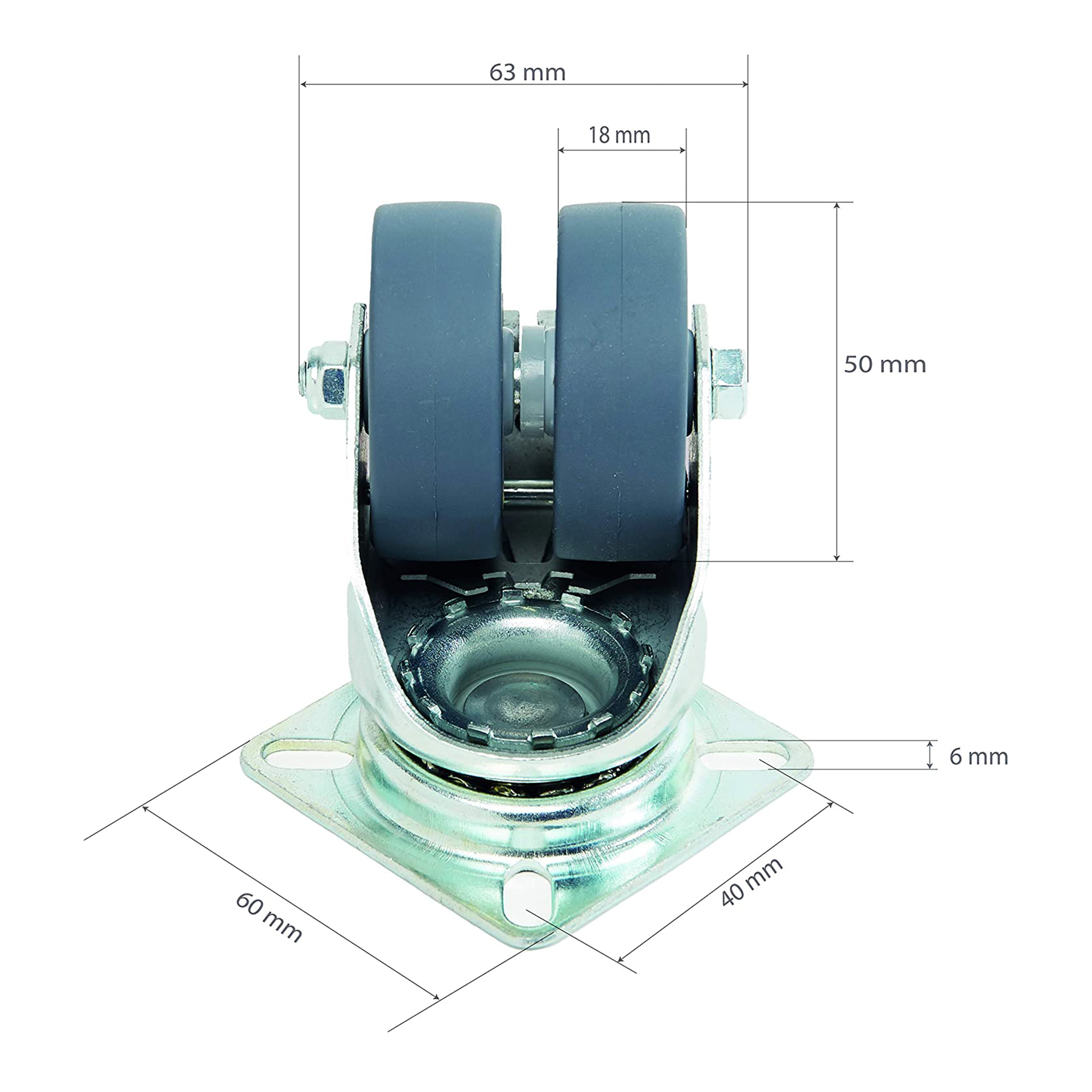 Die Doppelschwerlastrollen sind ideal für alle harten Böden im Innen- und Außenbereich, sowie für Fliesen, Steinböden, Holzdielen, Pflastersteinen und Asphalt.